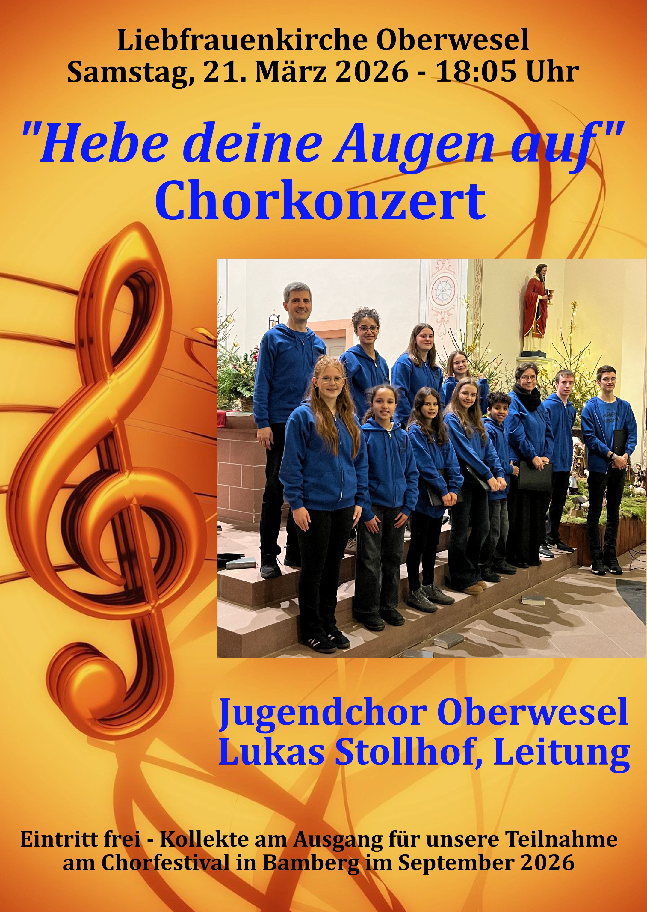 Der Eintritt ist frei - Kollekte am Ausgang für die Teilnahme des Chors am Chorfestival in Bamberg im September 2026