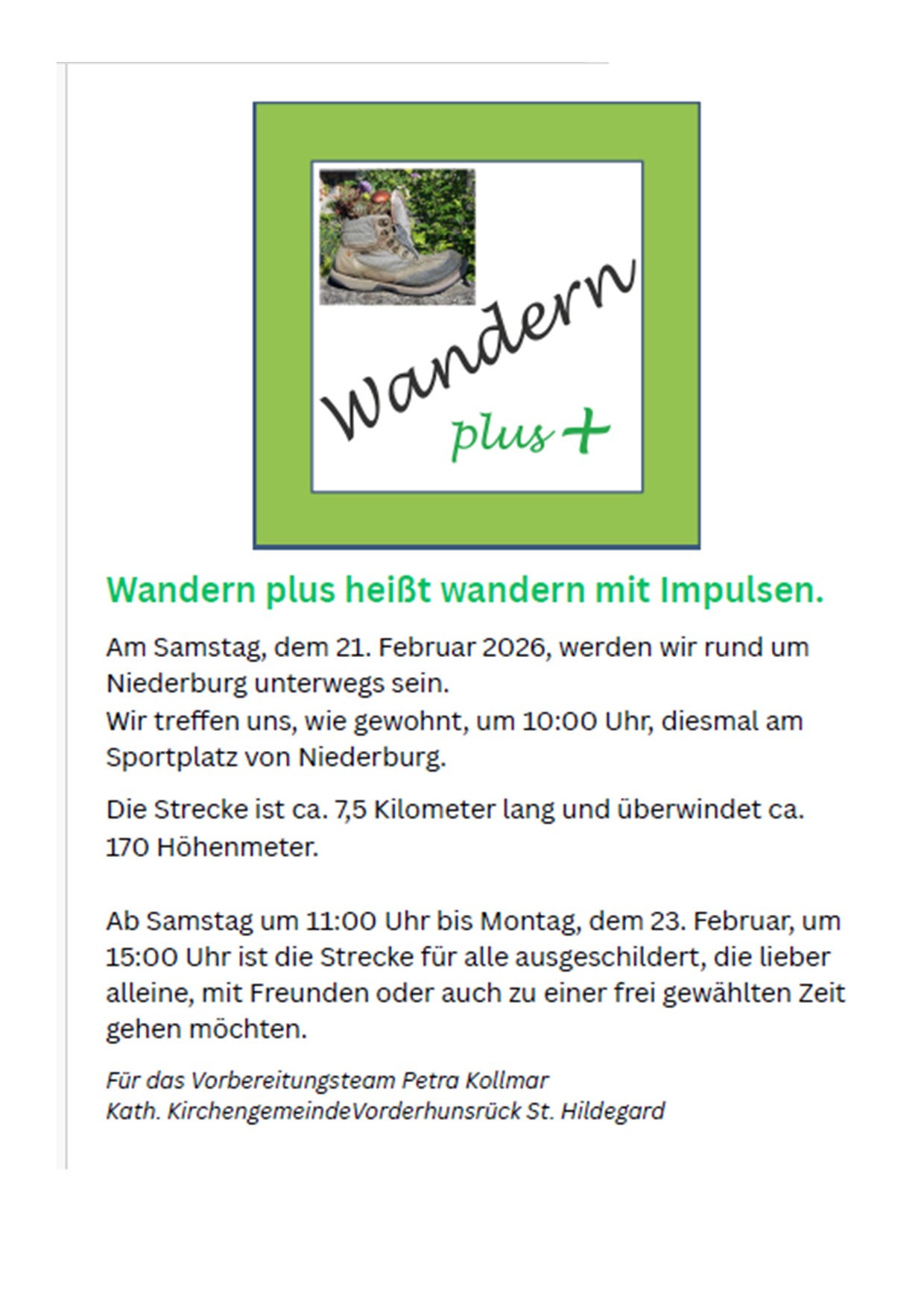 Am Samstag, dem 21. Februar, werden wir rund um Niederburg unterwegs sein.